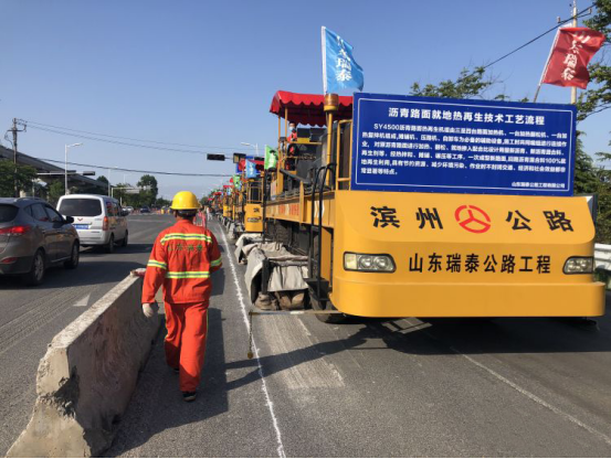 項目施工單位山東瑞泰公路工程有限公司于2016年10月購買了一套鞍山森遠就地熱再生機組,該機組采用多步法作業、全程加熱、工藝柔性好,具有加熱均勻、熱得快、效率高、無煙無塵利于環保等優點,在省內幾個高等級公路就地熱再生工程項目中積累了豐富的施工經驗。經初步測算,可以減少碳排放2005噸,節約標準煤872噸,節約瀝青混合料7496 m3,經濟效益和社會效益非常顯著。